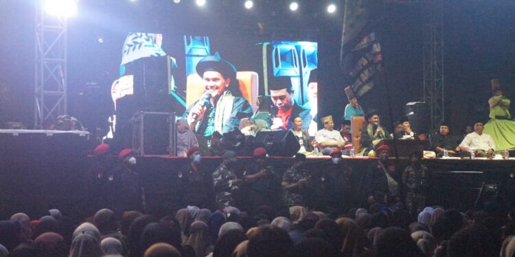 Trenggalek – bedanews.com – Alun-alun Kabupaten Trenggalek menjadi saksi kebersamaan ribuan jamaah Mafia Sholawat dari Kabupaten Trenggalek dalam acara Sholawat Kebangsaan. Acara ini dihadiri oleh pendiri Mafia Sholawat Indonesia, Gus Ali Gondrong, dan KH. Muhammad Ali Shodiqin, pada Selasa (16/1/2023).