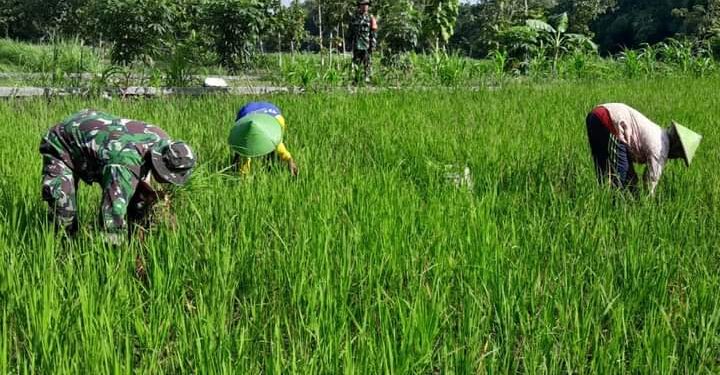 Tak ingin ketinggalan, Babinsa Koramil 0801/12 Pringkuku, Kodim 0801/Pacitan, Sertu Heru terus melakukan pendampingan terhadap para petani di wilayah binaannya, mulai dari awal pengolahan lahan, masa tanam, perawatan hingga nanti memasuki panen.