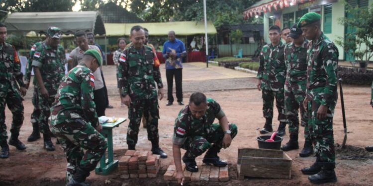 Merauke – Danrem 174/ATW selaku Dankolakops Satgas Pamtas Statis RI-PNG Sektor Selatan berkunjung di Pos Kotis Satgas Pamtas Yonif 726/Tml dalam rangka buka puasa bersama sekaligus melaksanakan peletakan batu pertama pembangunan Musholla di Kampung Sota, Distrik Sota, Kamis (28/03/2024).
