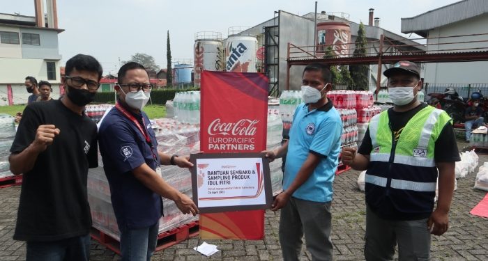 SUMEDANG – Coca-Cola Europacific Partners (CCEP) Indonesia menyerahkan ratusan paket sembako Idul Fitri 1443 Hijriah untuk warga di sekitar pabrik di seluruh Indonesia. Di salah satu pabrik minuman ternama yang berlokasi di Jl.Raya Bandung-Garut, Desa Cihanjuang, Cimanggung Kabupaten Sumedang penyerahan donasi ini merupakan inisiatif perusahaan mewujudkan bentuk kontribusi kepedulian perusahaan terhadap warga di sekitar pabrik, termasuk kaum dhuafa.