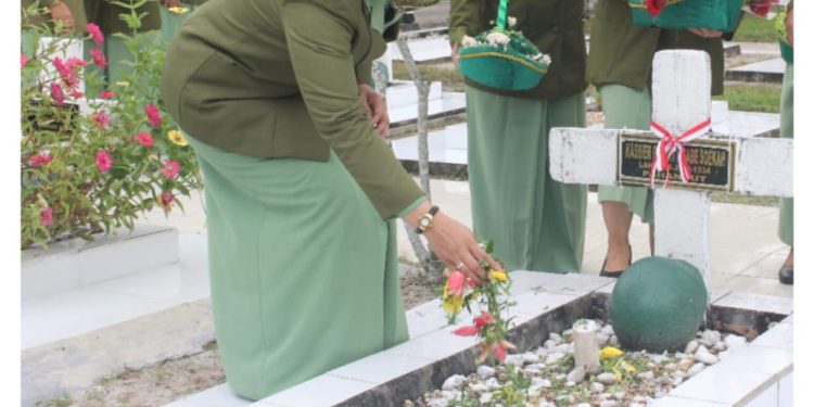 Palangka Raya – bedanews.com – Dalam rangka menyambut HUT ke-76 Persit Kartika Chandra Kirana tahun 2022, Persit Kartika Chandra Kirana Koorcab Rem 102 PD XII/Tanjungpura menggelar ziarah yang dipimpin Ketua Persit Kartika Chandra Kirana Koorcab Rem 102 PD XII/ Tanjungpura, NY. Diyah Yudianto Putrajaya di Taman Makam Pahlawan (TMP) Sanaman Lampang, Jalan Cilik Riwut Km. 2,5 Palangkaraya, Kalimantan Tengah, pada Jum’at (01/04).