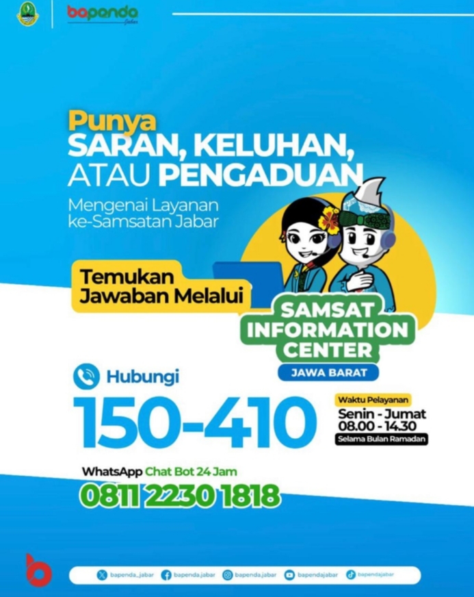SUBANG. BEDAnews.com – Wajib Pajak (WP) kendaraan bermotor di Kabupaten Subang saat ini bisa mendapatkan informasi mengenai layanan kesamsatan Jawa Barat selama 24 jam melalui Samsat Information Center (SIM-C) di nomor telepon 150-410 maupun melalui WhatsApp 0811-2230-1818.“Layanan SIM-C