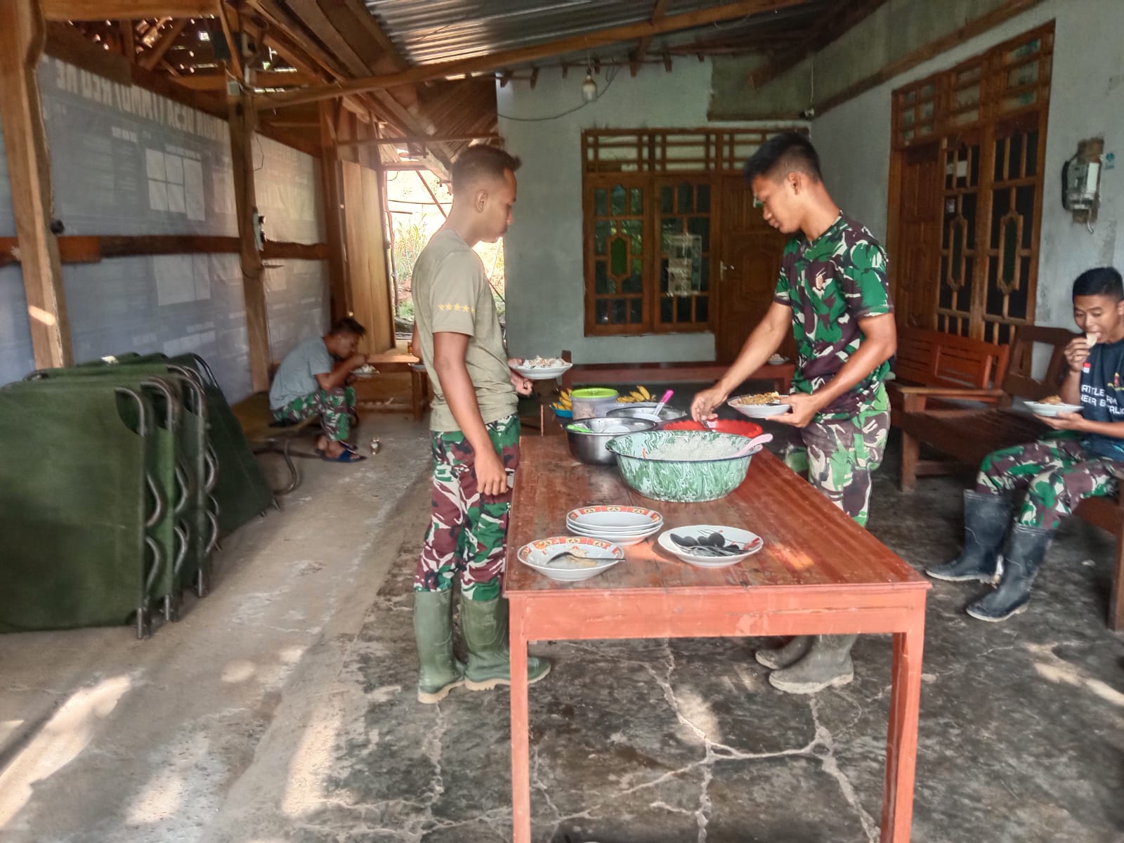 Bantul – Satgas TMMD Reguler 119 Kodim 0729 Bantul sebagai rasa syukur sarapan pagi bersama warga di Dusun Tangkil, Kal. Muntuk & Dusun Salam, Kalurahan Temuwuh, Kapanewon Dlingo, Kabupaten Bantul.