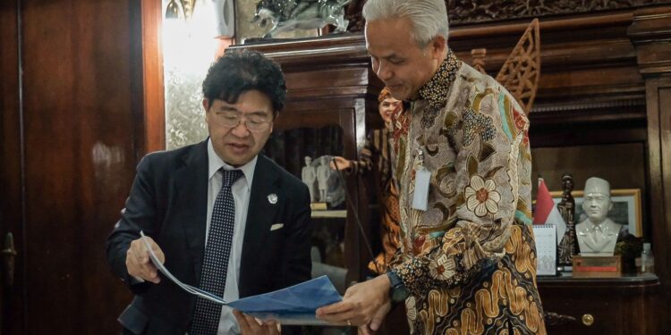 Semarang – bedanews.com – Presiden of The Sasakawa Peace Foundation (SPF), Atsushi Sunami menemui Gubernur Jawa Tengah, Ganjar Pranowo di Rumah Dinas Puri Gedeh, Rabu (15/3/2023). Keduanya terlibat dalam perbincangan mendalam mengenai isu kelautan hingga radikalisme.
