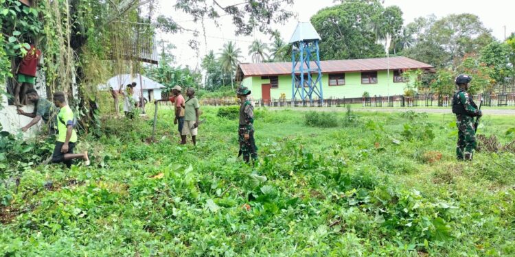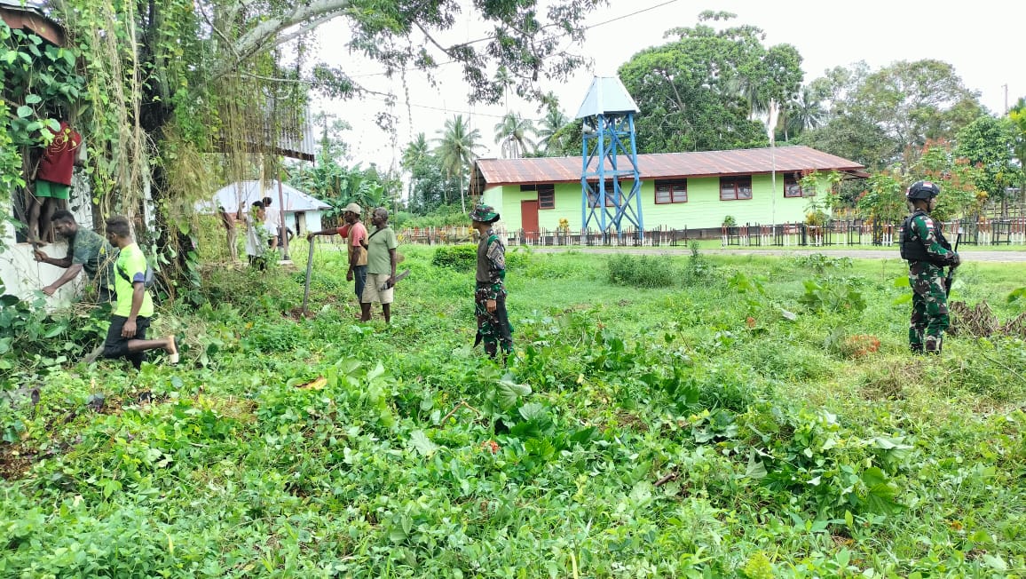Merauke – Program kampung bersih terus digalakan personel Satgas Pamtas Yonif 726/Tml, sasaran kali ini adalah Kampung Kwell yang berada di wilayah Kecamatan Eligobel, Senin (11/03/2024).