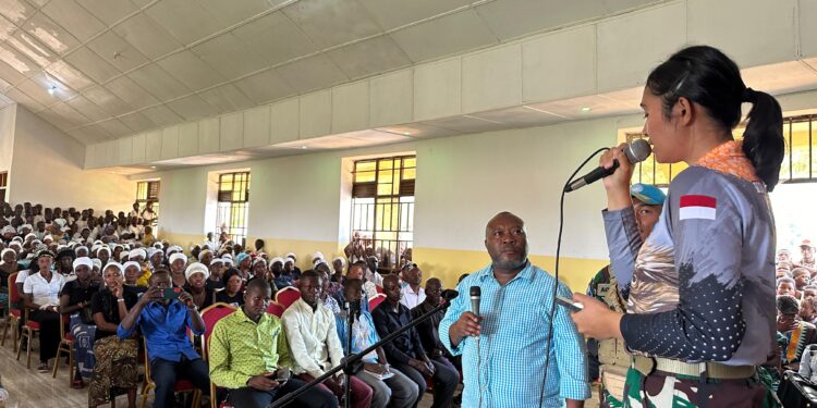 Kongo – Satgas Indo RDB XXXIX-E/MONUSCO Kompi Bravo, POB Komanda yang dipimpin oleh Lettu Inf Agung Redono bersama Female Engagement Team (FET) melaksanakan kegiatan kampanye kesehatan dan pawai bersama Asosiasi Wanita Irumu dalam rangka memperingati International Women’s Day bertempat di Panti Sosial Asosiasi CEO Desa Maitatu dan kantor Bupati Irumu, Komanda, Republik Demokratik Kongo, beberapa waktu lalu.