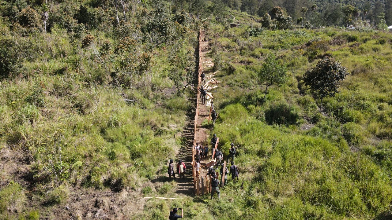 Papua – bedanews.com – Menjadi solusi ditengah kesulitan rakyat sesuai dengan 7 perintah harian Kasad, Satgas Kodim Yonif R 408/Suhbrastha Pos Koramil Mayuberi membangun pagar sepanjang 1 Km, bertujuan untuk mengatasi hama babi yang sering merusak hasil kebun masyarakat di Kampung Mayuberi, Distrik Ilaga Utara, Kabupaten Puncak, Papua.