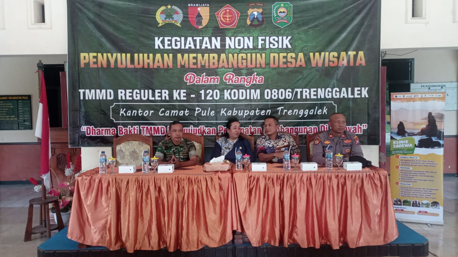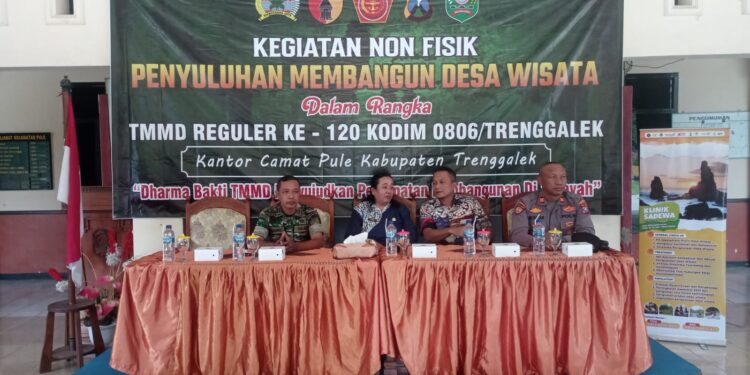 TRENGGALEK || bedanews.com – Dalam rangka program TNI Manunggal Membangun Desa (TMMD) ke-120, Satgas Kodim 0806/Trenggalek tidak hanya berfokus pada pengerjaan sasaran fisik, tetapi juga melaksanakan berbagai kegiatan non fisik yang telah diprogramkan dan dijadwalkan. Salah satu kegiatan non fisik yang menonjol adalah penyuluhan desa wisata yang diselenggarakan bekerja sama dengan Dinas Pariwisata dan Kebudayaan (Disparbud) Trenggalek.