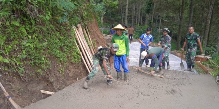 Kolaborasi ini menunjukkan kekompakan dan semangat gotong-royong antara personil Satgas TMMD dan warga masyarakat setempat.