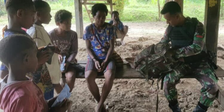 KEEROM – bedanews.com – Dalam rangka membantu kesulitan warga diperbatasan Satgas Yonif 143/TWEJ intensifkan kunjungan kepemukiman guna tingkatkan kesehatan sekaligus pemahaman pola hidup sehat di Kampung Bompay, Distrik Waris, Kab. Keerom, Papua, Minggu (8/1/2023).