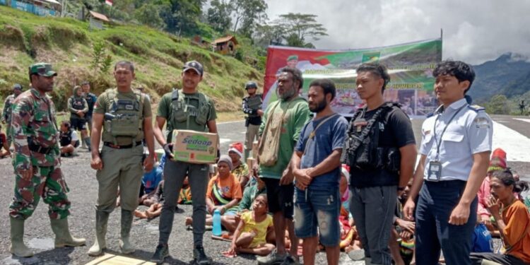 PEGUNUNGAN BINTANG – bedanews.com – Bentuk kepedulian kepada warga masyarakat Satgas Yonif 143/TWEJ Pos Kiwirok mendistribusian bantuan logistik dari Pangdam XVII/Cenderawasih Mayjen TNI Muhammad Saleh Mustafa kepada warga di Distrik Kiwirok, Kab. Pegunungan Bintang, Papua, Rabu (11/1/2023).