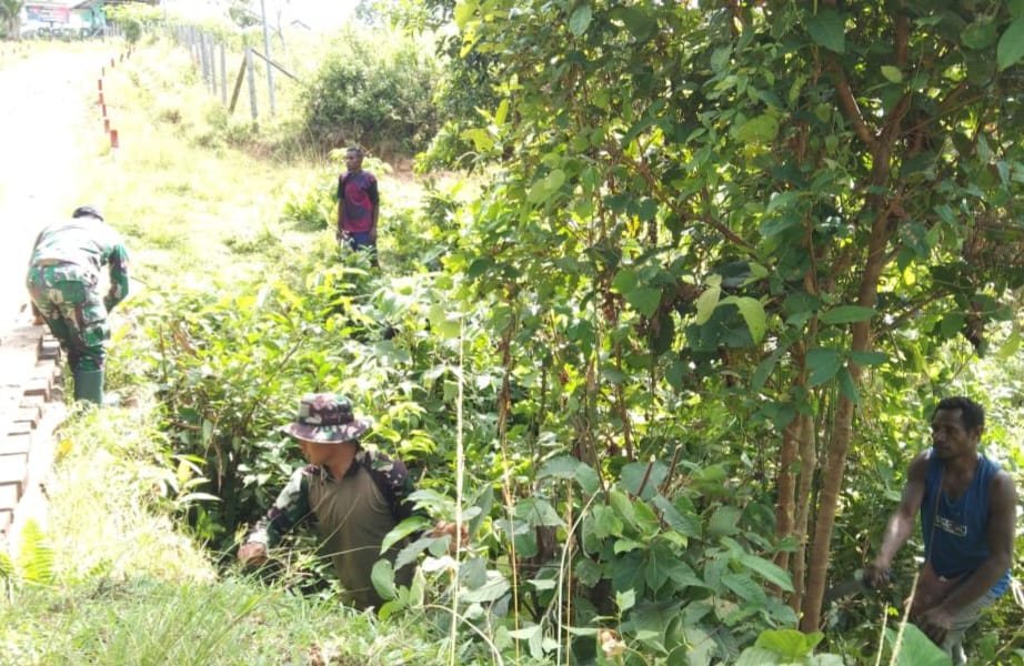 Keerom – bedanews.com – Satgas Yonif 143/TWEJ kobarkan kembali semangat gotong royong dalam rangka memupuk jiwa kebersamaan dengan mengajak warga masyarakat melaksanakan pembersihan jalan Kampung Yabanda, Distrik Yaffi, Kab. Keerom, Papua, Minggu (26/03/2023).