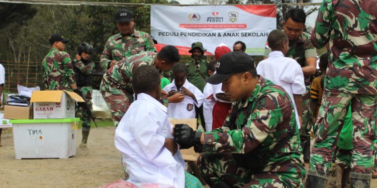 Home » Satgas Yonif Mekanis 203/AK Bekerja Sama Dengan Artha Graha Membagikan Perlengkapan Sekolah Untuk Anak-Anak Pegunungan Tengah