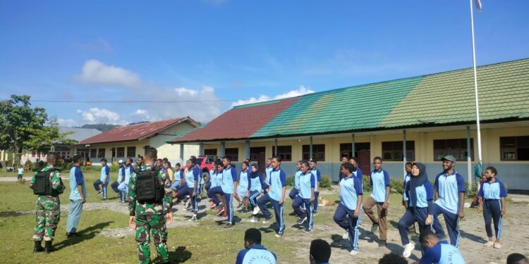Yalimo – bedanews.com – Satgas Yonif Raider 142/KJ melalui Pos Kotis Elelim melaksanakan pelatihan Baris berbaris kepada Siswa Siswi SMAN 1 Elelim, Distrik Elelim, Kabupaten Yalimo, Provinsi Papua Pegunungan, Rabu (08/03/2023).