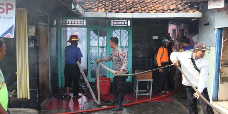 Demak – bedanews.com – Personel Polres Demak memadamkan api yang membakar sebuah rumah dan toko di Kompleks Kauman, Kelurahan Bintoro, Kecamatan Demak, Kabupaten Demak yang berdekatan dengan Masjid Agung Demak, Kamis (3/11/2022).