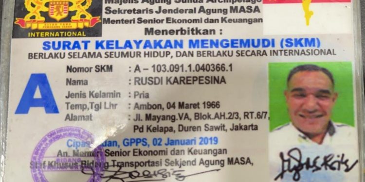 Pengemudi ini memakai mobil dengan nomor polisi yang berbeda dari nomor polisi mobil pada umumnya. Ketika ditanya SIM, pengemudi yang bernama Rusdi Karepesina itu, mengaku sebagai jenderal di Kekaisaran Sunda Nusantara.
