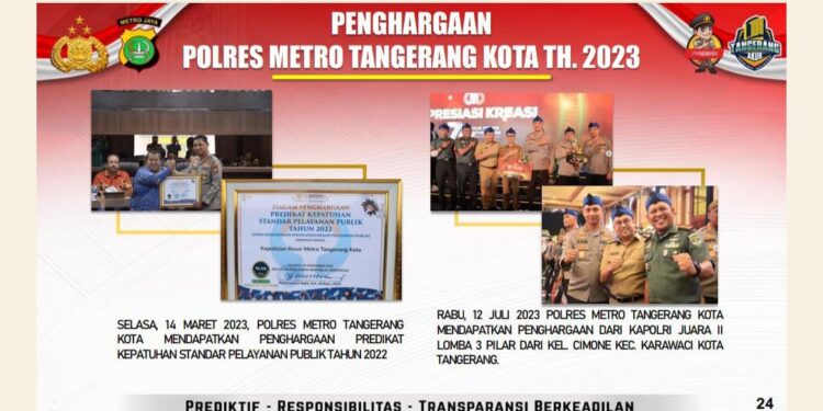Berikut sejumlah penghargaan diterima Polres Metro Tangerang Kota sapanjang tahun 2023 antara lain: