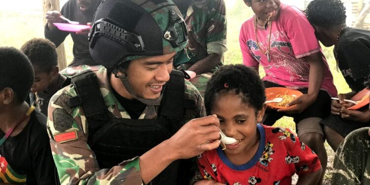 NDUGA – bedanews.com – Pererat hubungan dan tali persaudaraan bersama masyarakat Papua Pegunungan, Satgas Yonif Raider 321/GT/13/1 Kostrad Pos Yigi makan bersama dengan masyarakat, bertempat di Kampung Yigi, Distrik Yigi, Kabupaten Nduga, Papua.