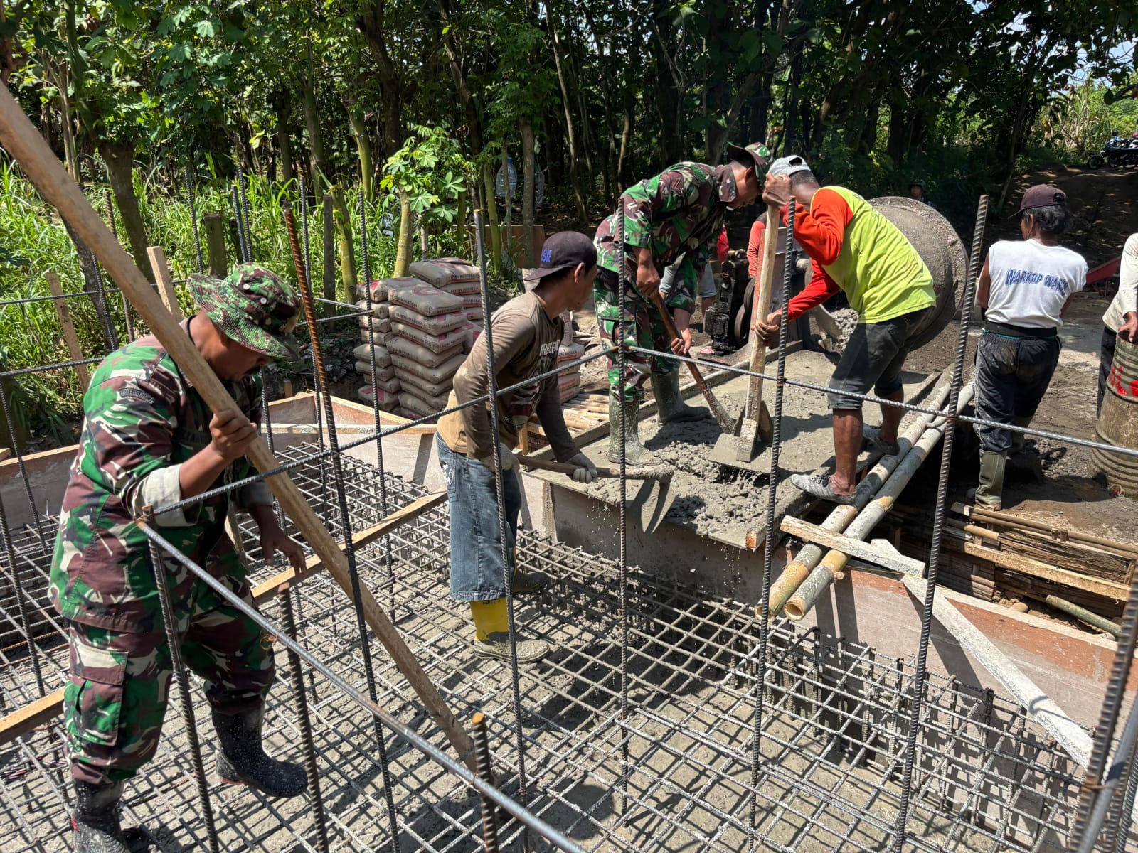Kegiatan gotong-royong ini berlangsung dengan penuh antusias. Sejak pagi hari, warga dari berbagai kalangan turut hadir, sementara anggota TNI ikut terjun langsung membantu proses pengadukan hingga pengecoran material pondasi. Kebersamaan yang terjalin mencerminkan sinergi kuat antara TNI dan masyarakat dalam membangun fasilitas umum yang bermanfaat bagi banyak orang.