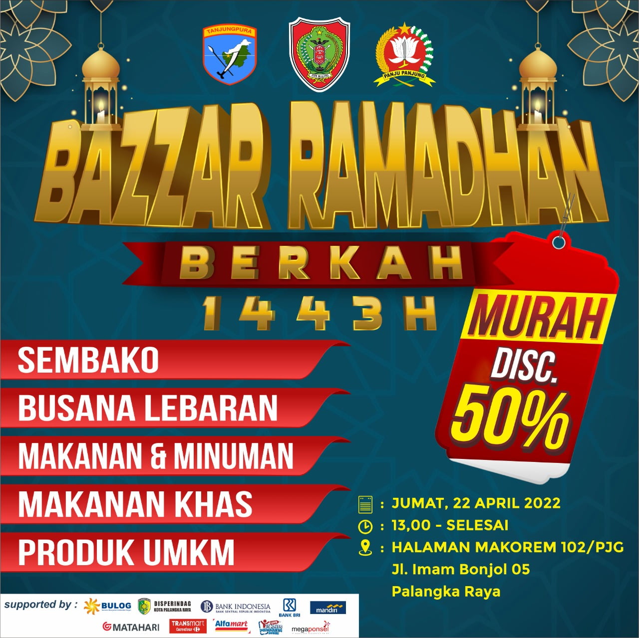 Palangka Raya – bedanews.com – Korem 102/Panju Panjung akan menggelar kegiatan Bazar Ramadhan Berkah 1443 H di halaman Makorem 102/Pjg, Jalan Imam Bonjol, No.05, Palangka Raya, Jum’at (22 April 2022).