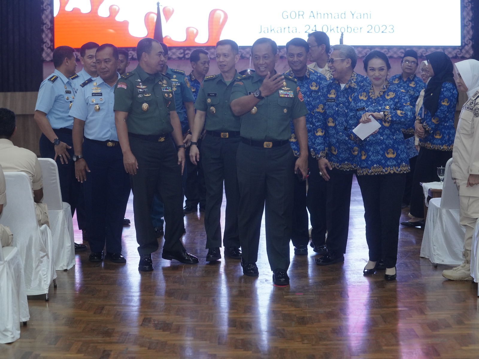 Jakarta – Rangkaian kegiatan peringatan Hari Ulang Tahun (HUT) ke-52 KORPRI tahun 2023 yang jatuh setiap tanggal 29 November, Dewan Pengurus Korpri TNI menggelar bakti sosial berupa donor darah sebagai salah satu agenda untuk medukung program KORPRI Nasional, sekaligus dalam rangka pemecahan rekor MURI kategori donor darah ASN Kementrian Lembaga terbanyak, bertempat di GOR Ahmad Yani Mabes TNI Cilangkap, Jakarta Timur, Selasa (24/10/2023).