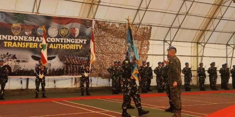 Lebanon, bedanews.com – Serah terima jabatan Komandan Satuan Tugas Force Head Quarter Support Unit (FHQSU XXVI-O1) United Nations Interim Force in Lebanon (Unifil) telah dilaksanakan dari Kolonel Arm Ezra Nathanael S.Kom, M.M.,M.Han (Abituren Akmil 1998) kepada Kolonel Inf Ghoffar Ngismail (Abituren Akmil 1999).