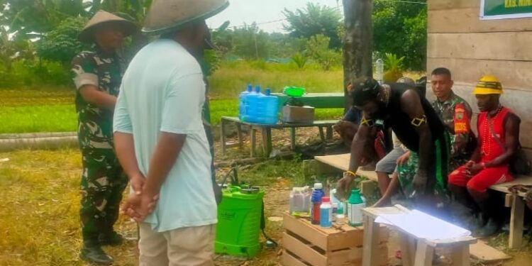 Timika, bedanews.com – Babinsa Koramil 1710-05/Jila Kodim 1710/Mimika, Serka Kame Kula memberikan pelatihan kepada warga tentang cara mengoperasionalkan alat mesin pertanian (Alsintan) dan penggunaan pestisida. Latihan dilakukan untuk menunjang dan membantu petani sekaligus merealisasikan target pemerintah dalam swasembada pangan.