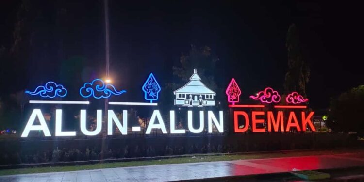 Demak – bedanews.com – Pemerintah Kabupaten Demak resmi mengembalikan nama Alun – alun Demak yang sebelumnya bernama Simpang Enam Demak, Minggu (18/12/22) malam.