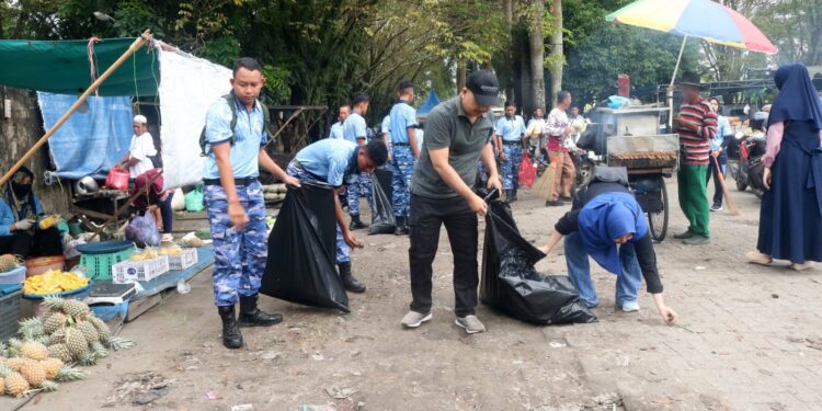 Banjarbaru – Dalam rangka memperingati HUT ke-80 TNI Angkatan Udara Tahun 2026, Lanud Sjamsudin Noor menggelar kegiatan Karya Bakti di kawasan Pasar Ulin Raya, Banjarbaru, Senin (13/04/2026). Kegiatan ini melibatkan berbagai unsur, mulai dari TNI-Polri, instansi pemerintah daerah, hingga masyarakat setempat.