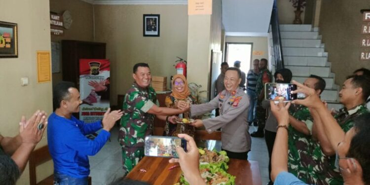Sinergitas TNI-POLRI Koramil 07/Pleret Beserta Forkompimkap Pleret Kirim Tumpeng Pada HUT Bhayangkara Ke-76 Ke Polsek PLeret