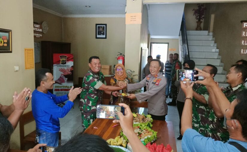 Sinergitas TNI-POLRI Koramil 07/Pleret Beserta Forkompimkap Pleret Kirim Tumpeng Pada HUT Bhayangkara Ke-76 Ke Polsek PLeret