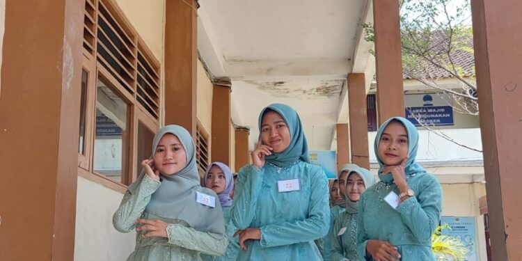 Demak – bedanews.com – Ada yang menarik di salah satu koridor SMKN 1 Sayung Demak. Sejumlah siswi terlihat percaya diri saat berlenggak lenggok di depan serambi kelas.
