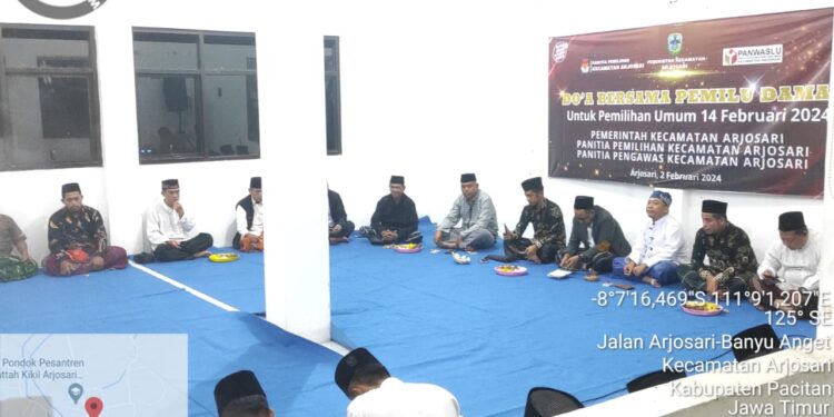 Rangkaian acara tersebut diawali dengan pembacaan Ummul Kitab, Istighosah kemudian diakhiri dengan doa bersama, yang berlangsung di Pendopo Kec. Arjosari, Kab. Pacitan, Jum’at (02/02/2024) Malam.