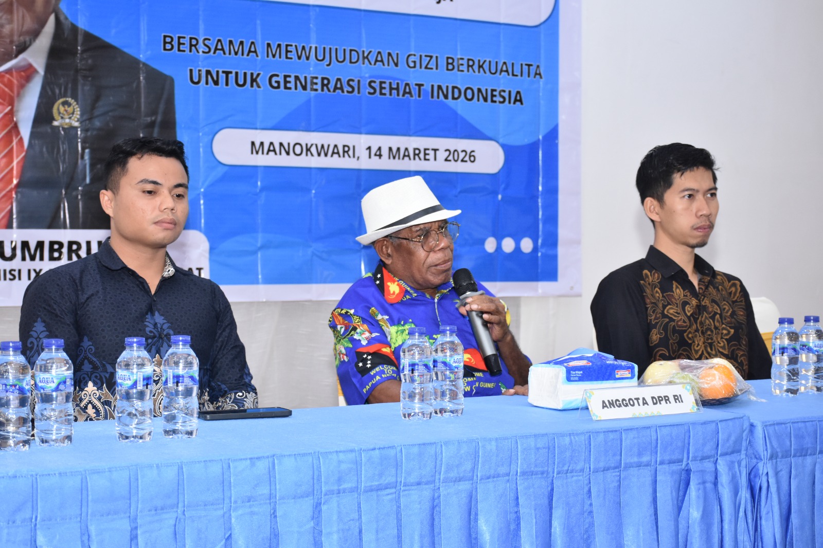 Acara sosialisasi program MBG dihadiri oleh Anggota Komisi IX DPR RI, Obet Rembruren, Kordinator Wilayah Papua Barat, Dianto Pongtengko, serta ratusan peserta sosialisasi yang sudah menantikan sejak lama program MBG.