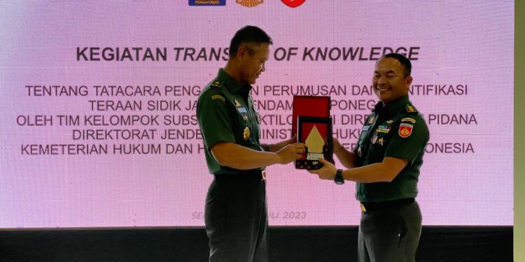 Semarang – bedanews.com – Direktur Ajudan Jenderal TNI Angkatan Darat (Dirajenad), Brigjen TNI Faisal Ahmadi, S.I.P, M.M, CHRMP memimpin dan membuka sosialisasi Transfer Of Knowledge tentang Tata Cara Pengambilan, Perumusan Dan Identifikasi Sidik Jari di Kodam IV/Diponegoro yang dipusatkan di Ajendam IV/Diponegoro oleh penyaji materi Tim Daktiloskopi Kemenkumham RI, bertempat di Ruang CAT Ajendam IV/Diponegoro, Selasa (4/7/2023).