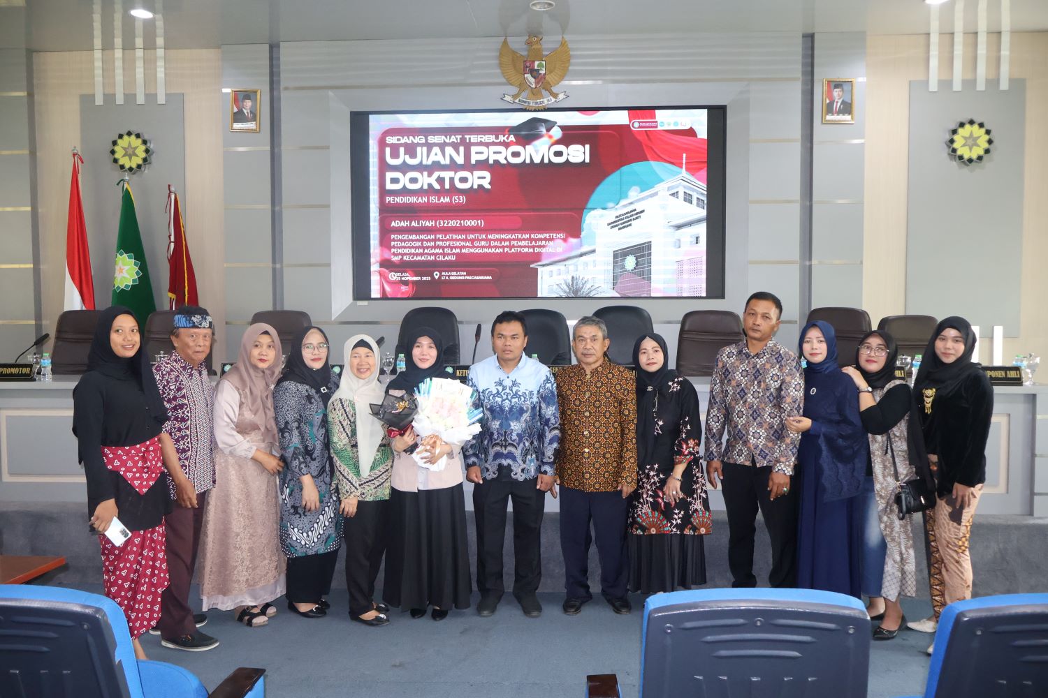 Dengan Disertasi berjudul” PENGEMBANGAN PELATIHAN UNTUK MENINGKATKAN KOMPETENSI PEDAGOGIK DAN PROFESIONAL GURU DALAM PEMBELAJARAN PENDIDIKAN AGAMA ISLAM MENGGUNAKAN PLATFORM DIGITAL” (Penelitian di SMP Kecamatan Cilaku)