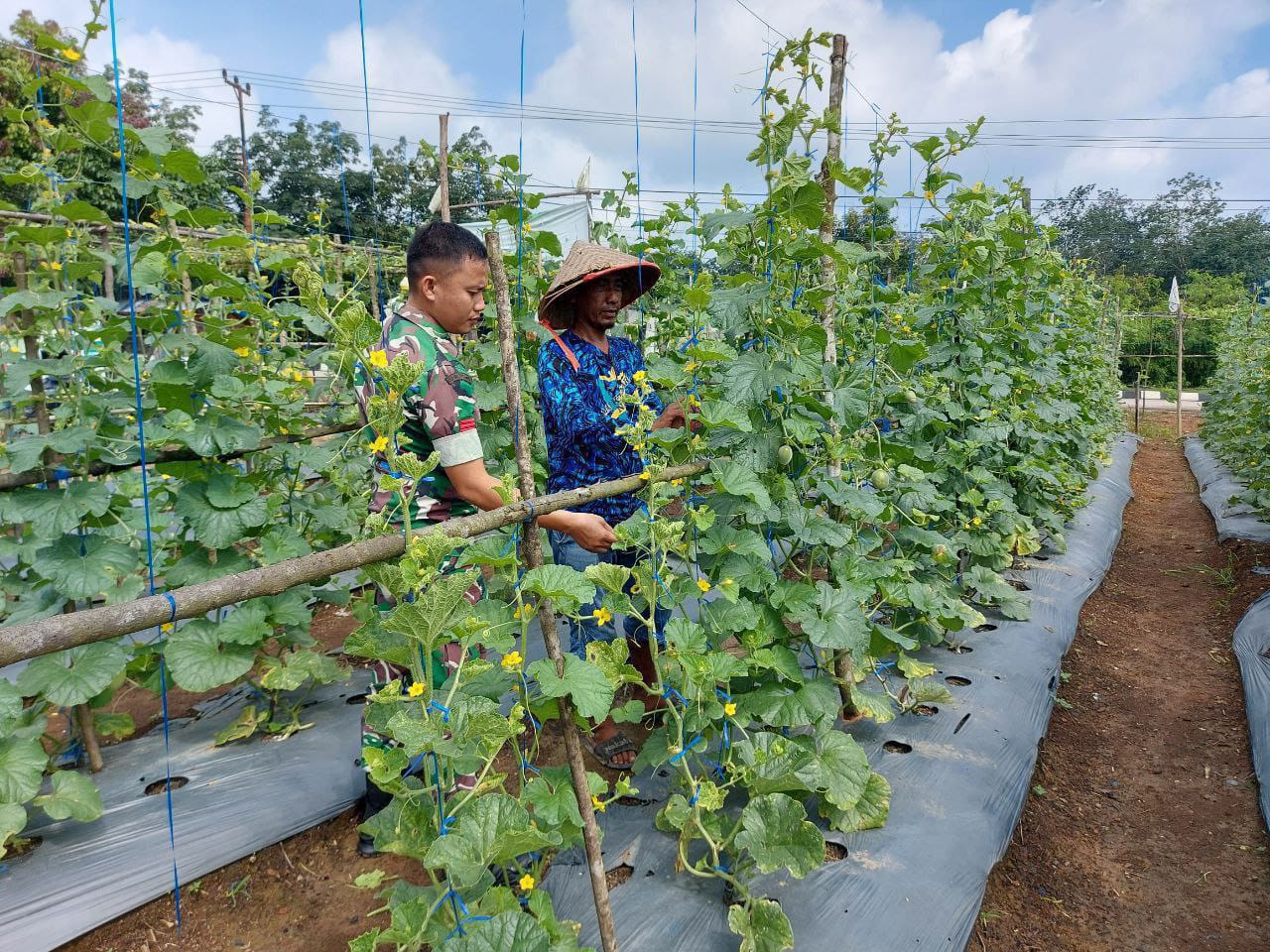 Teluk Kuantan – Babinsa Koramil 02/Kuantan Tengah Dalam melakukan kegiatan pendampingan Hanpangan (ketahanan pangan) terhadap petani di wilayah binaannya Praka Achmad Kamal selaku Babinsa Desa Beringin Taluk Kec. Kuantan Tengah Kab. Kuansing, membantu Petani merawat Kebun Gambas / sering di sebut Pitulo oleh warga Desa Beringin Taluk dan beberapa sayuran lainnya, Selasa (01/07/2025).
