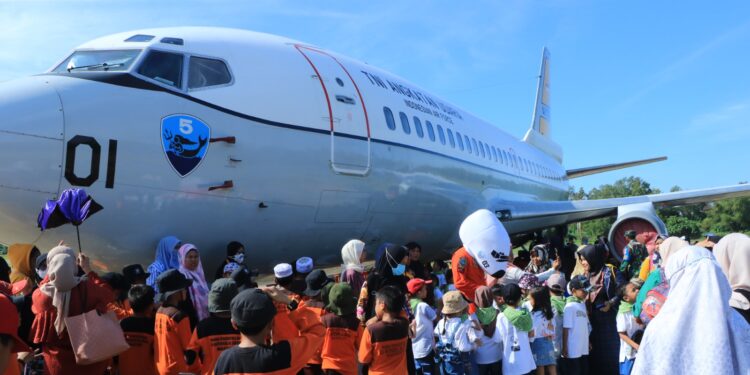 Makassar – Sebanyak 634 siswa Sekolah Dasar (SD), Taman Kanak-Kanak (TK) dan Pendidikan Anak Usia Dini (PAUD) didampingi guru serta orang tua siswa dari delapan sekolah di Kota Makassar dan Maros melaksanakan kunjungan dirgantara, bertempat di Apron Skadron Udara 33 Lanud Sultan Hassanudin, Makassar, Sulawesi Selatan, Jumat (31/5/2024).