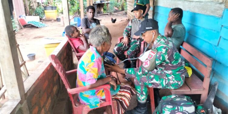 Home » Tanpa Mengenal Lelah Demi Tugas Pengabdian, Personel Satgas Tamalatea Lasanakan Program Pelayanan Kesehatan Di Wilayah Perbatasan RI-PNG