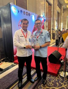 Penghargaan diserahkan oleh Menteri Koordinator Bidang Maritim dan Investasi, Luhut Binsar Pandjaitan didampingi Menteri Pendayagunaan Aparatur Negara dan Reformasi Birokrasi (PANRB), Abdullah Azwar Anas dalam acara SPBE Summit 2023, Senin (20/03/2023) di Hotel Kempinski Jakarta.