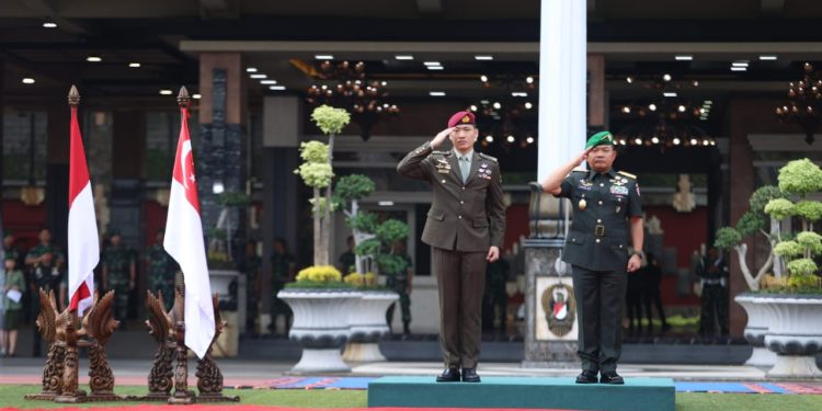 Jakarta – bedanews.com – Kepala Staf Angkatan Darat (Kasad), Jenderal TNI Dudung Abdurachman, S.E, M.M menerima kunjungan kehormatan Panglima AD Singapura, Brigadir Jenderal David Neo di Mabesad, Jakarta, Selasa (10/5/2022).