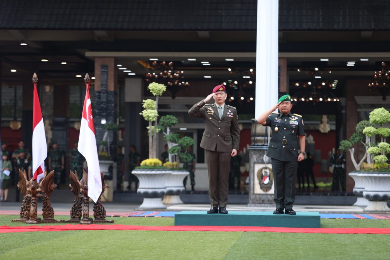 Kunjungan kehormatan ini diawali dengan jajar kehormatan dan upacara penghormatan militer kepada Panglima AD Singapura.