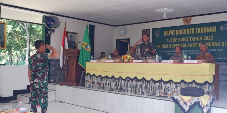 Pacitan – bedanews.com – Primer Koperasi (Primkop) Kartika Merak 01 Kodim 0801/Pacitan, menggelar agenda Rapat Anggota Tahunan (RAT) Tutup Buku Ke 55 Tahun 2023, berlangsung di Aula Kopral Sigit Jl. Letjen Suprapto No. 42 Pacitan, Senin (26/02/2024).