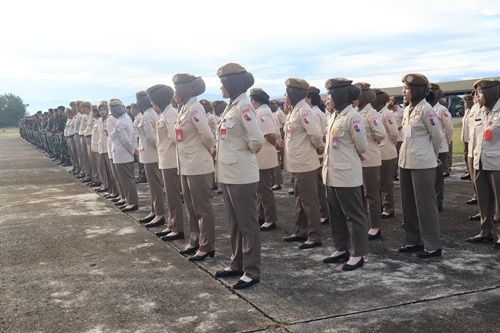 Setelah mengikuti latihan dasar militer para prajurit mulai dari Perwira, Bintara, Tamtama dan Pegawai Negeri Sipil (PNS) Lanud Sultan Hasanuddin melaksanakan lari siang sejauh ±5 km dengan rute mengelilingi kawasan Pangkalan Udara. (Pen Hnd)