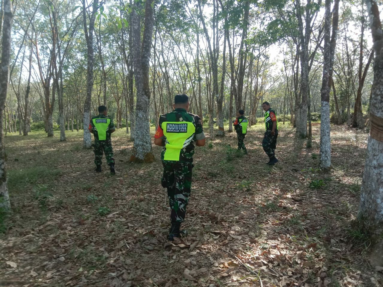 Teluk Kuantan – Bintara Pembina Desa (Babinsa) Koramil 02/Kuantan Tengah Serda Egiprianto bersama Anggota Lainnya melaksanakan Patroli Kebakaran Hutan dan Lahan (Karhutla) di Desa Beringin Taluk Kec. Kuantan Tengah Kab. Kuansing, Senin (11/08/2025).