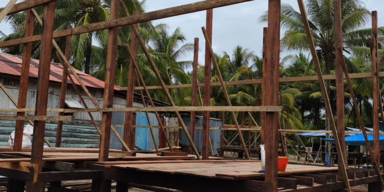 Timika, bedanews.com – Pelaksanaan program TMMD ke-128 Kodim 1710/Mimika di Kampung Keakwa, Distrik Mimika Tengah, Kab. Mimika mengedepankan kualitas dalam setiap sasaran fisik yang dikerjakan. Salah satu upaya tersebut terlihat dari penggunaan material kayu besi sebagai bahan utama dalam pembangunan rumah layak huni dan fasilitas MCK umum bagi masyarakat.