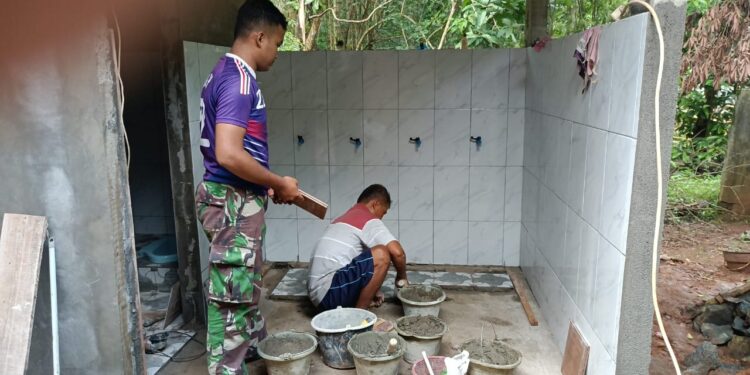 Bantul – Meskipun cuaca kurang bagus sering hujan, anggota Satgas TMMD Reguler 119 Kodim 0729 Bantul tetap semangat melaksanakan kegiatan pembangunan fisik infrastruktur. Sasaran perehaban tempat ibadah, Musholla Al Hidayah DI Dusun Karang Asem Rt 03 Kal, Muntuk, Kap, Dlingo dengan kondisi awal Mushola belum memiliki tempat Wudhu terus dikerjakan oleh anggota Satgas bersama warga sekitar.
