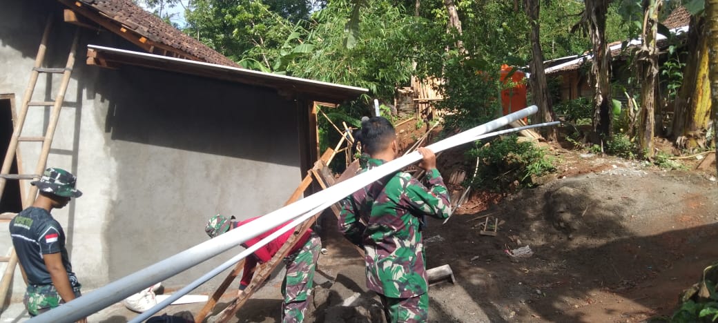 Bantul – TMMD Reguler 119 Kodim 0729 Bantul wujud kepedulian bagi masyarakat terhadap kebutuhan air bersih pada warga yang kesulitan mendapatkan air bersih, selesaikan pemasangan pipa peralon dan tandon air.