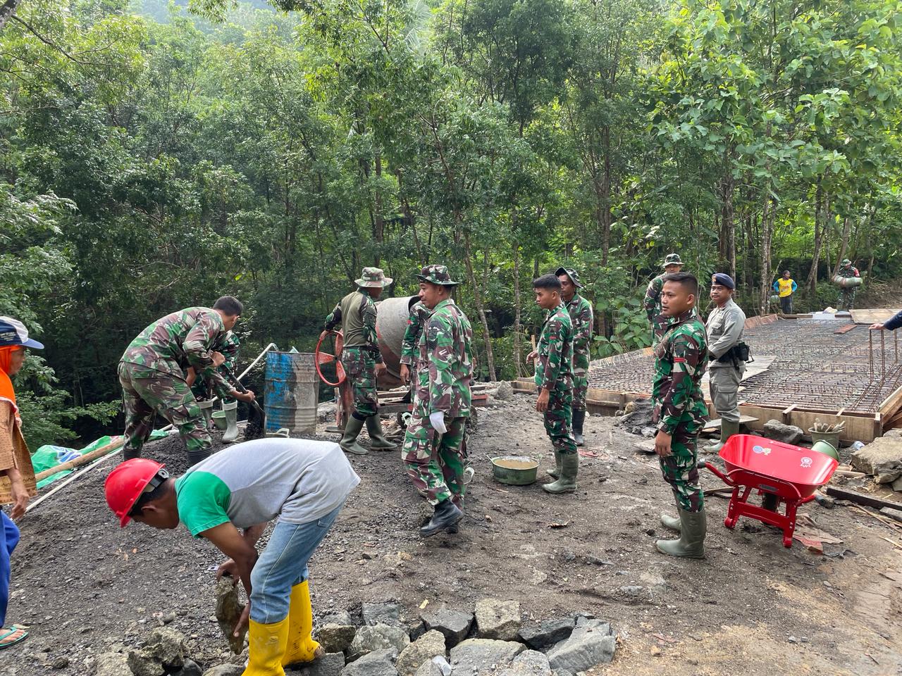 Kodim 0729 Bantul Kerahkan Alat Berat Excavator Bangun Jembatan