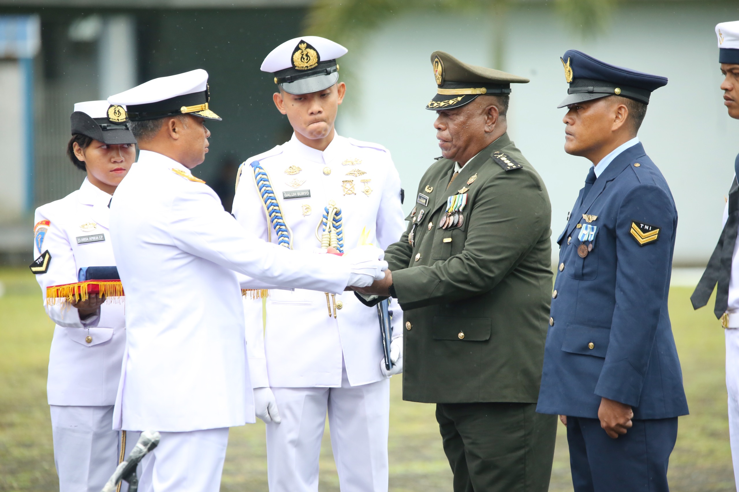 Ambon,- Wakil Komandan Komando Daerah Angkatan Laut (Wadankodaeral) IX Laksamana Pertama TNI Dr. Muhammad Risahdi, M.Si., (Han)., M.Tr. Opsla., mewakili Komandan Komando Daerah Angkatan Laut (Dankodaeral) IX Laksamana Muda TNI Hanarko Djodi Pamungkas S.H., pimpin Upacara HUT Ke-80 TNI Tahun 2025, bertempat di Lapangan Apel Mako Kodaeral IX Ambon, Minggu (05/10/2025).